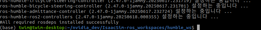 Isaac Sim 4.5.0은 ROS 2 Humble과의 연동이 매우 안정적으로 이루어지며, 별도의 Python 버전 충돌 없이도 시뮬레이션과 실제 시스템을 연계할 수 있는 환경을 제공합니다. 다음 포스팅에서는 URDF를 이용한 로봇 모델 가져오기, RViz 시각화, 그리고 MoveIt 2 연동까지 하나씩 다뤄보겠습니다.